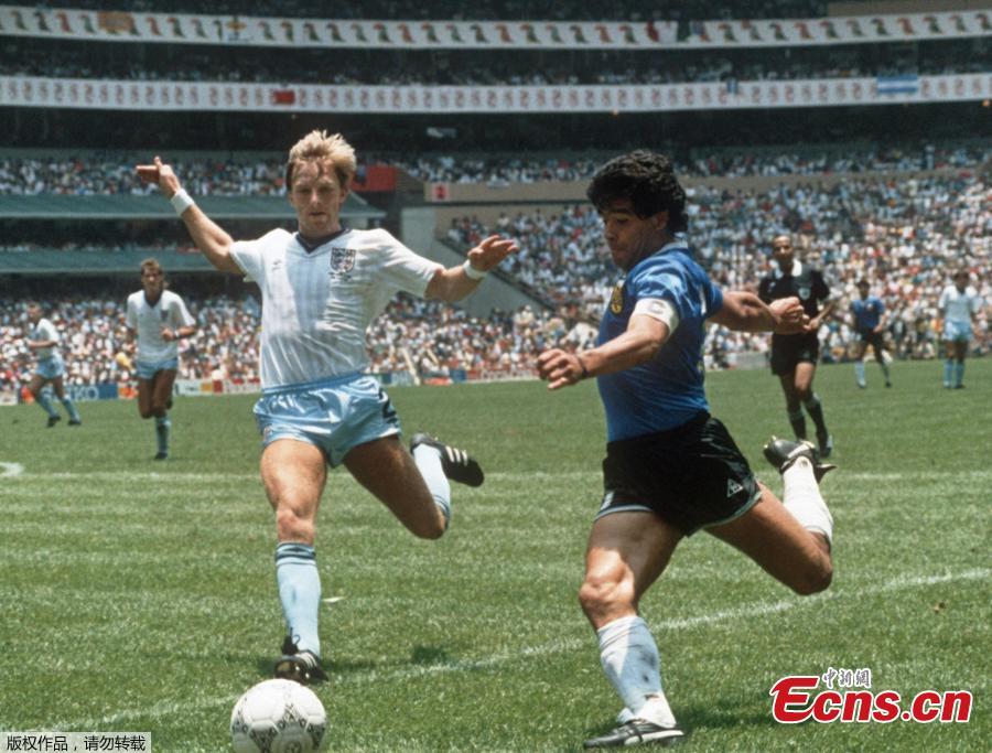 Photo taken on Jun. 22, 1986 shows Maradona scoring for Argentina in the World Cup quarter-final against England. (Photo/Agencies)
