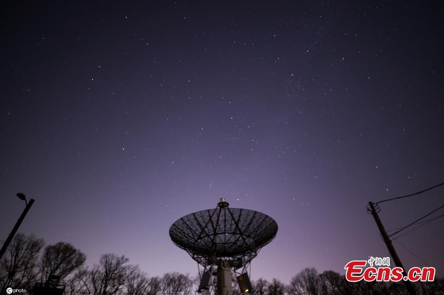 The Lyrid meteor shower lights up the sky over Korla City, northwest China's Xinjiang Uygur Autonomous Region, April 23, 2022. (Photo/VCG)
