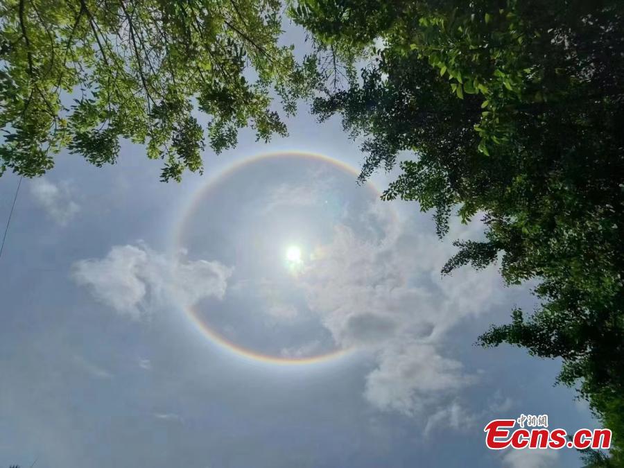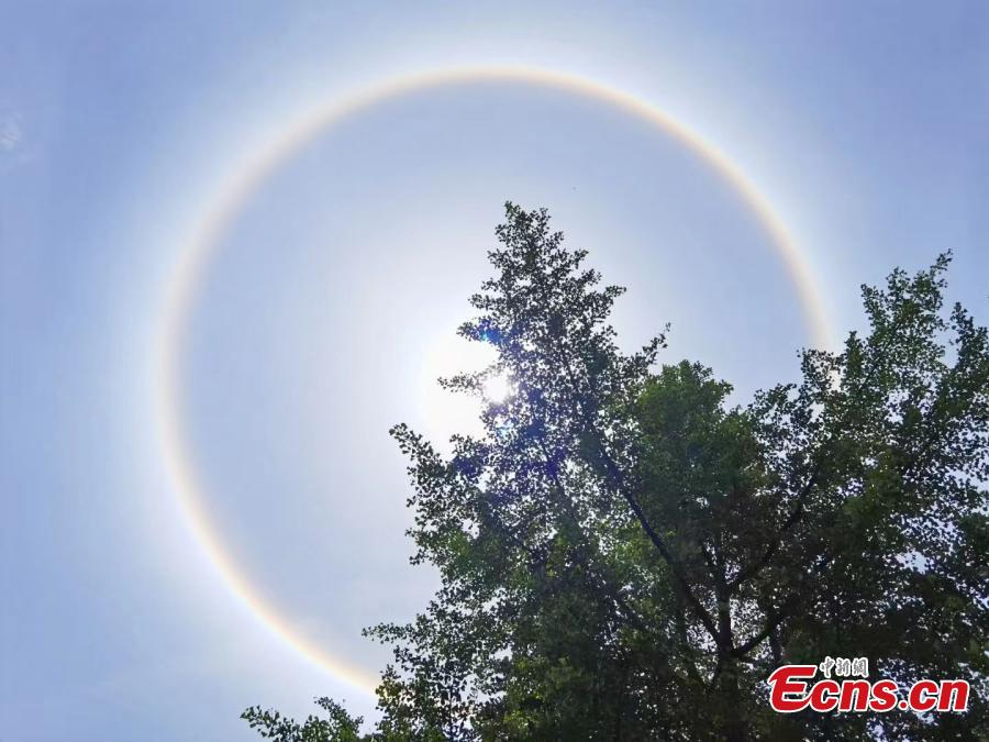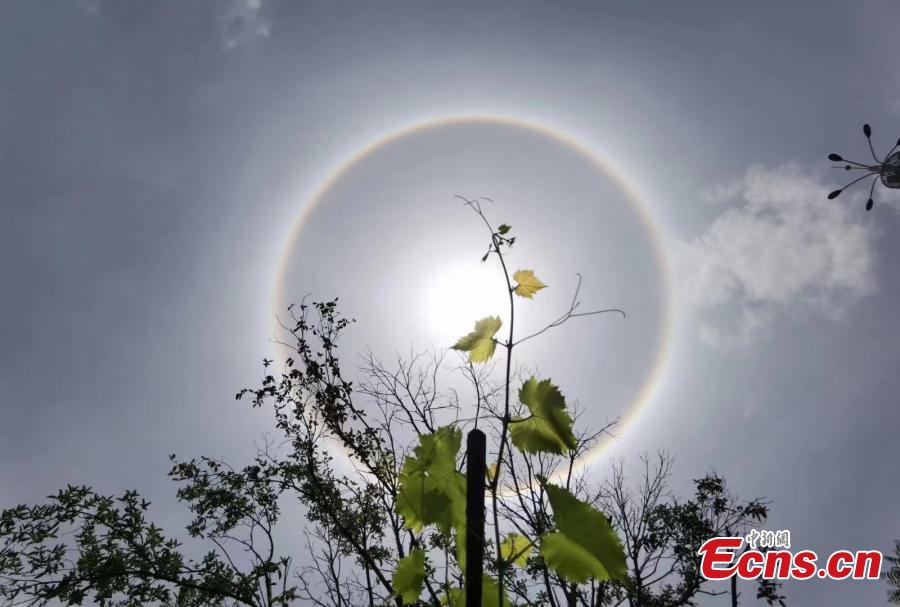 A halo, an optical illusion that appears around the sun, is seen in the sky in southwest China's Sichuan Province, April 28, 2022. (Photo: China News Service/Liang Bo)