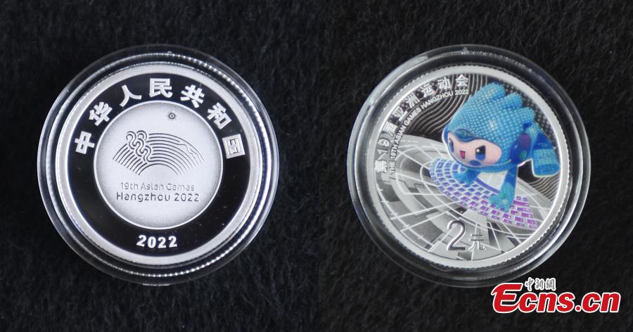 Photo shows the front side and the reverse side of the 5-gram silver commemorative coin for the 19th Asian Games Hangzhou 2022. (Photo: China News Service/Wang Gang)