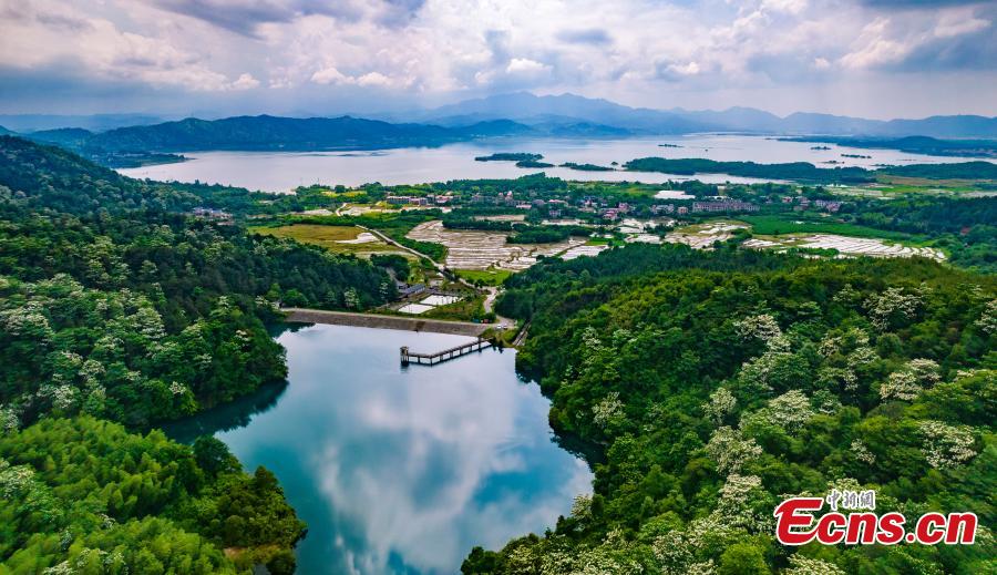 White flowers of wild princess trees are in full blossom on mountains in Xinyu, east China's Jiangxi Province, May 9, 2022, forming a unique scenery in Summer. (Photo: China News Service/Zhao Chunliang)