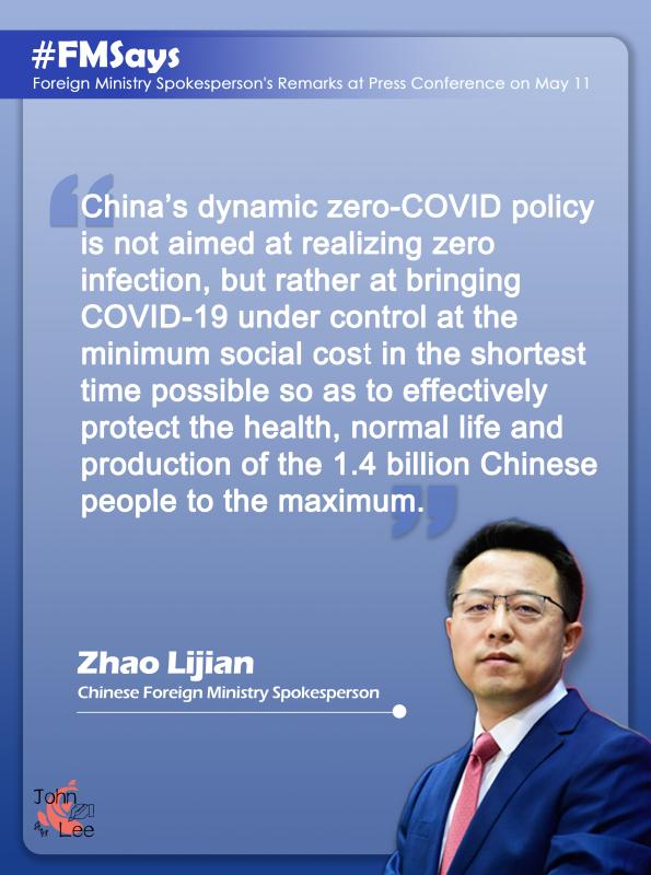 The objective of China's "dynamic zero-COVID" policy aims to maximize the protection of people's safety and health, China's Foreign Ministry spokesperson Zhao Lijian said on Wednesday.