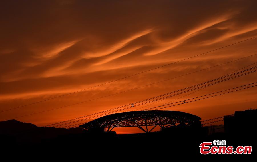 Photo shows scenery of flaming clouds at sunset in Beijing, May 12, 2022. (Photo provided to China News Service)