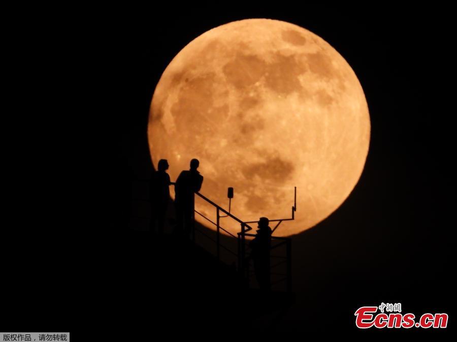 The full moon is seen above the Sava embankment along Lake Jarun., Zagreb, Croatia, May 15. 2022. (Photo/Agencies)