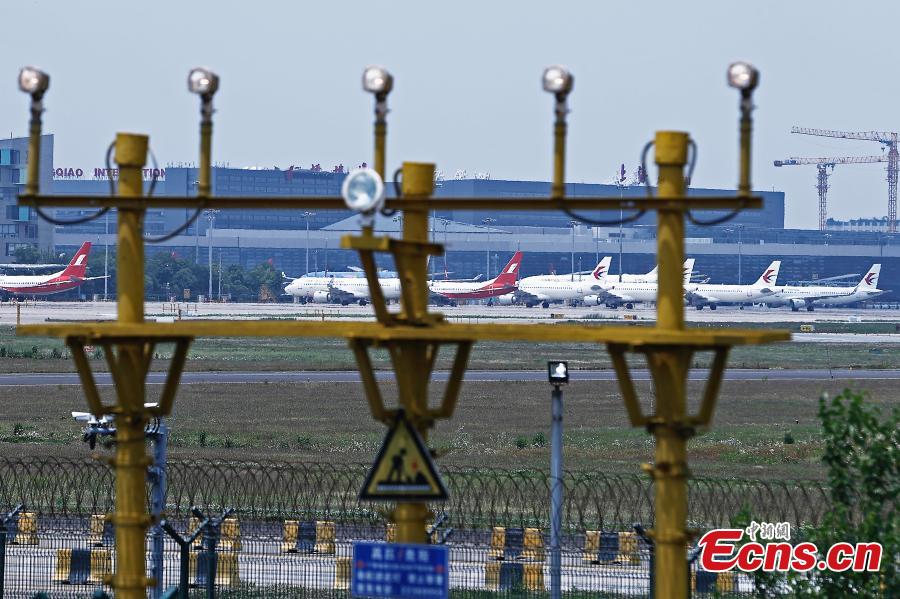 Passenger planes park at the shanghai Hongqiao International Airport, east China's Shanghai, May 16, 2022. (Photo: China News Service/Yin Liqin)