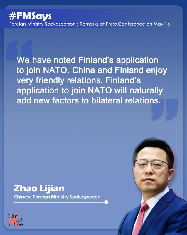 China says new factors will add to bilateral ties as Finland seeks NATO membership(1/1)