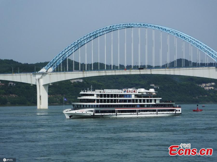 The world's largest pure electric cruise ship "Yangtze River Three Gorges 1" sails on the Yichang section of the Yangtze River, central China's Hubei Province, May 17, 2022. (Photo/ICphoto)