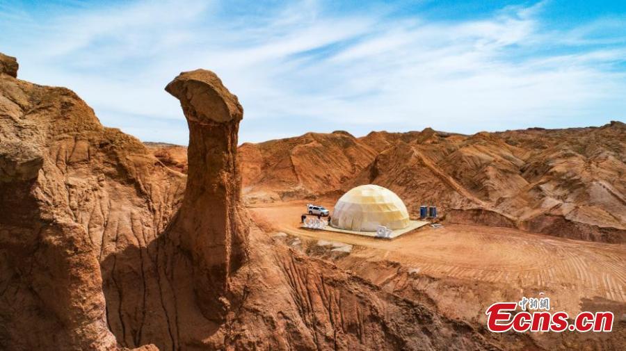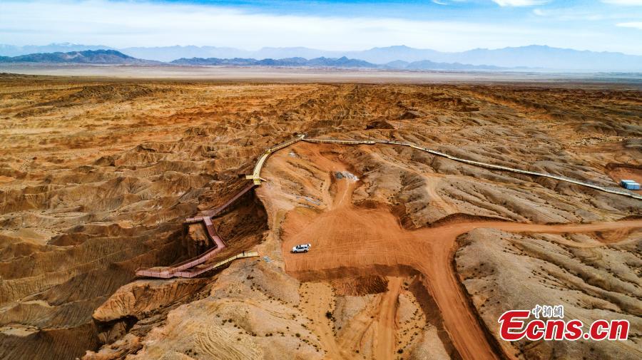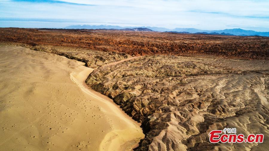 Scenery of red rock area of the Qaidam basin in Haixi of northwest China's Qinghai Province. The red rock area of the Qaidam basin has been dubbed "the most Martian place on Earth. (Photo/China News Service)