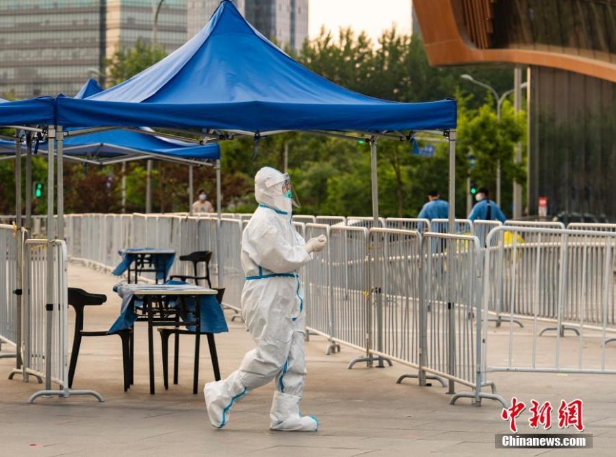A medical worker leaves a testing site at Chaoyang district, Beijing, May 18, 2022. (Photo: China News Service/Hou Yu)