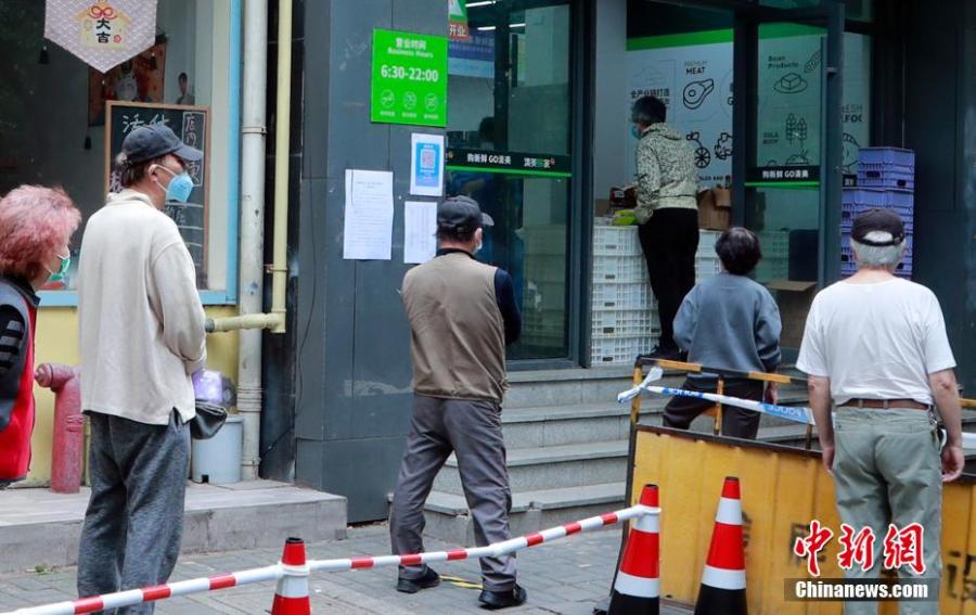 Residents living in Shanghai's precautionary zone line up to shop in front of a store, Shanghai, May 19, 2022. (Photo: China News Service/Tang Yanjun)