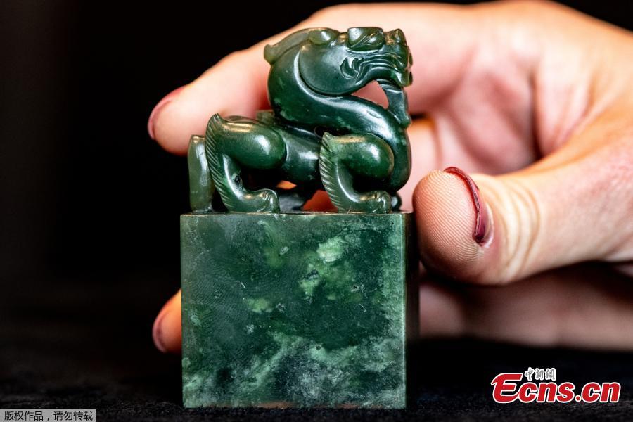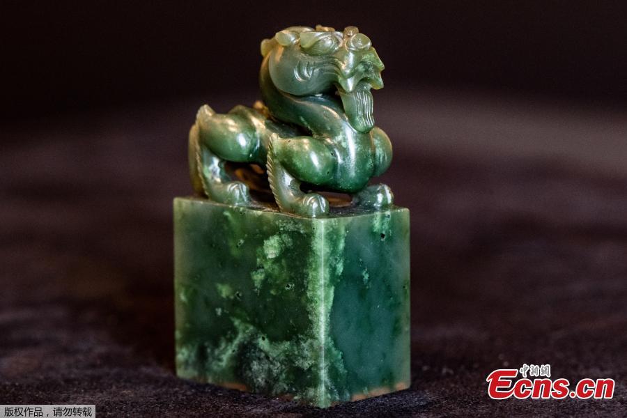 A close view of a Chinese imperial seal of the Qianlong era displayed ahead of its auction at Sotheby's auction house, Paris, France, May 19, 2022. (Photo/Agencies)