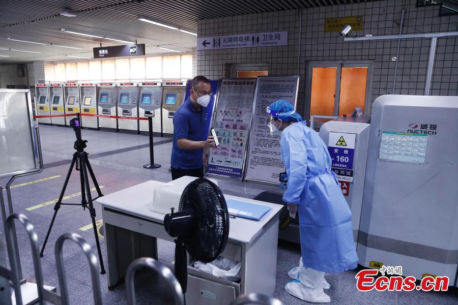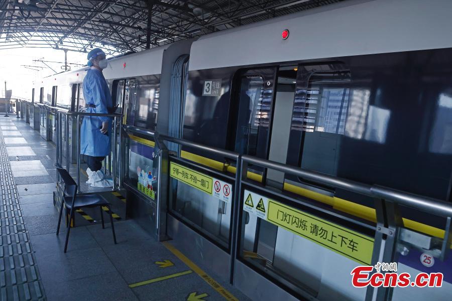 A staff member works at a metro station in east China's Shanghai, May 22, 2022. (Photo: China News Service/Yin Liqin)