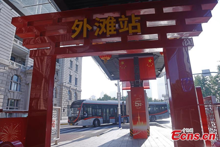 A bus arrives at a bus station at the Bond in east China's Shanghai, May 22, 2022. (Photo: China News Service/Yin Liqin)