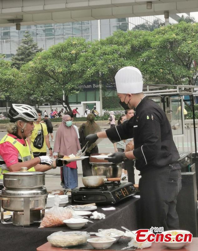 People enjoy street food during the car free day event in Jakarta, Indonesia, May 22, 2022. (Photo provided to China News Service)