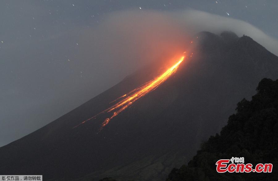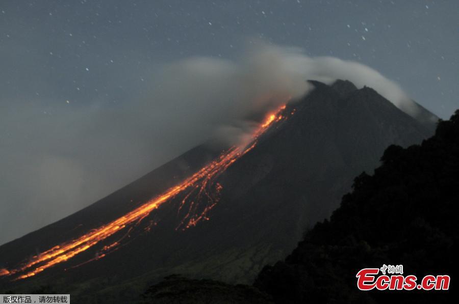 Volcanic lava and smokes spew from Mount Merapi in Yogyakarta, Indonesia, May 22, 2022. (Photo/ICphoto)