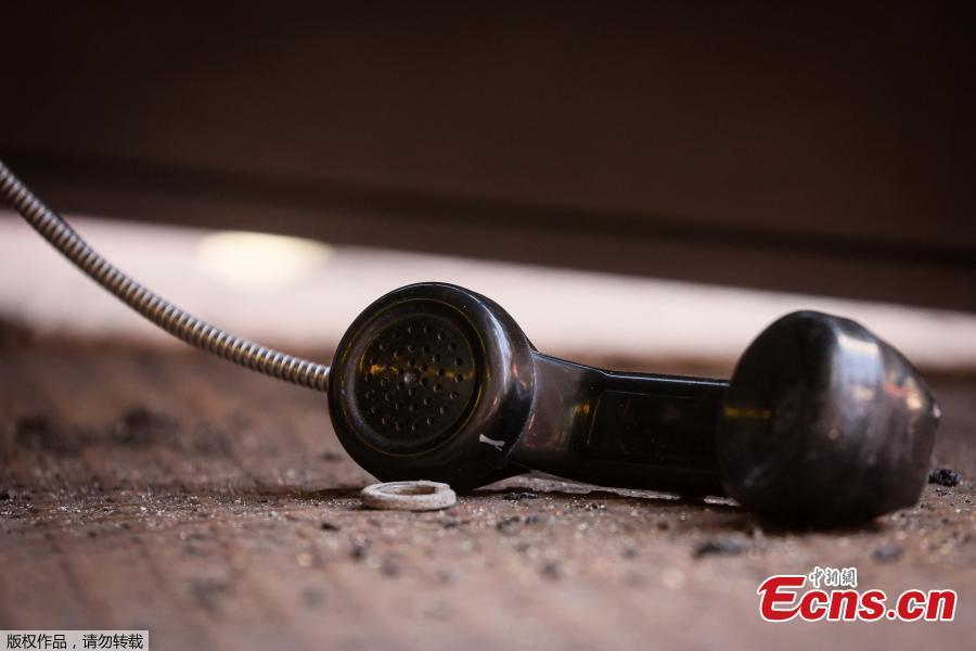 The handset falls as the last public payphone is loaded onto a truck during the removal near Times Square in New York City, U.S., May 23, 2022. (Photo/Agencies)