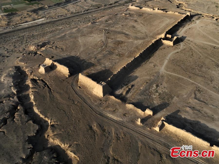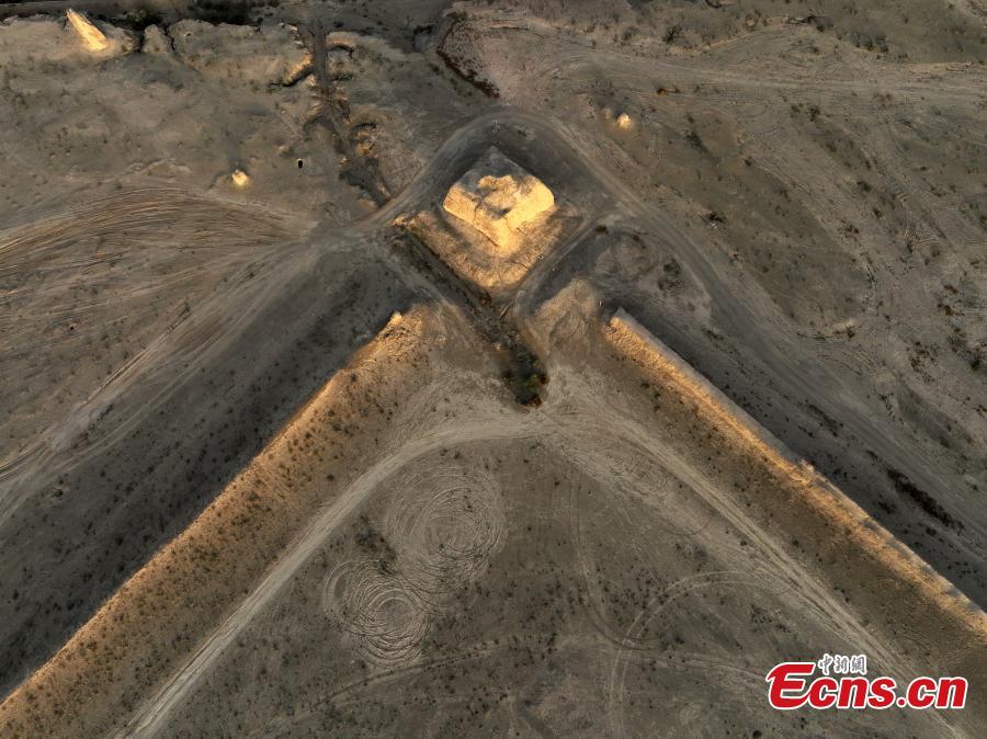 Magnificent sunset scenery at the "ruins of Camel City" in Gaotai county, Zhangye City, Gansu Province. (Photo: China News Service/Zheng Yaode)