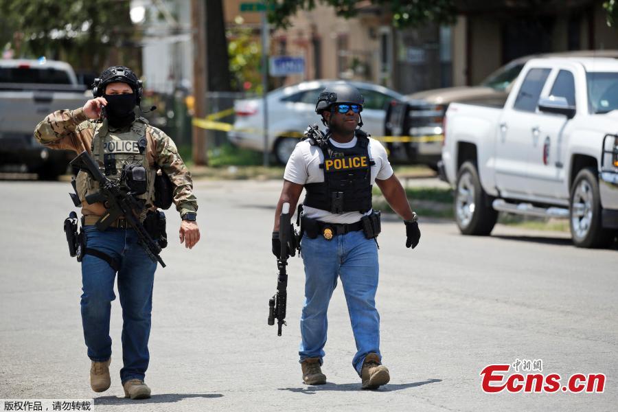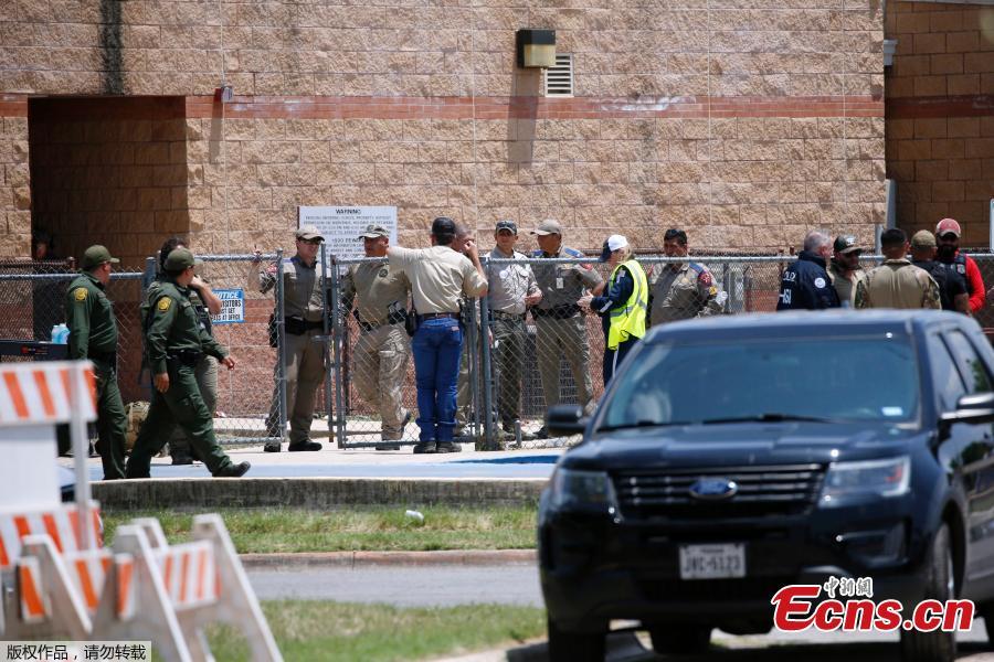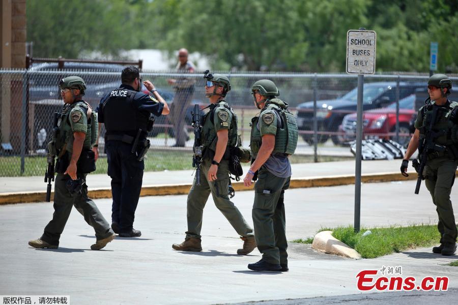 Police and other first responders stand outside the Robb Elementary school in Uvalde, Texas, U.S., May 24, 2022. The death toll from an elementary school shooting in the U.S. state of Texas has risen to 21, including 18 children. (Photo/Agencies)