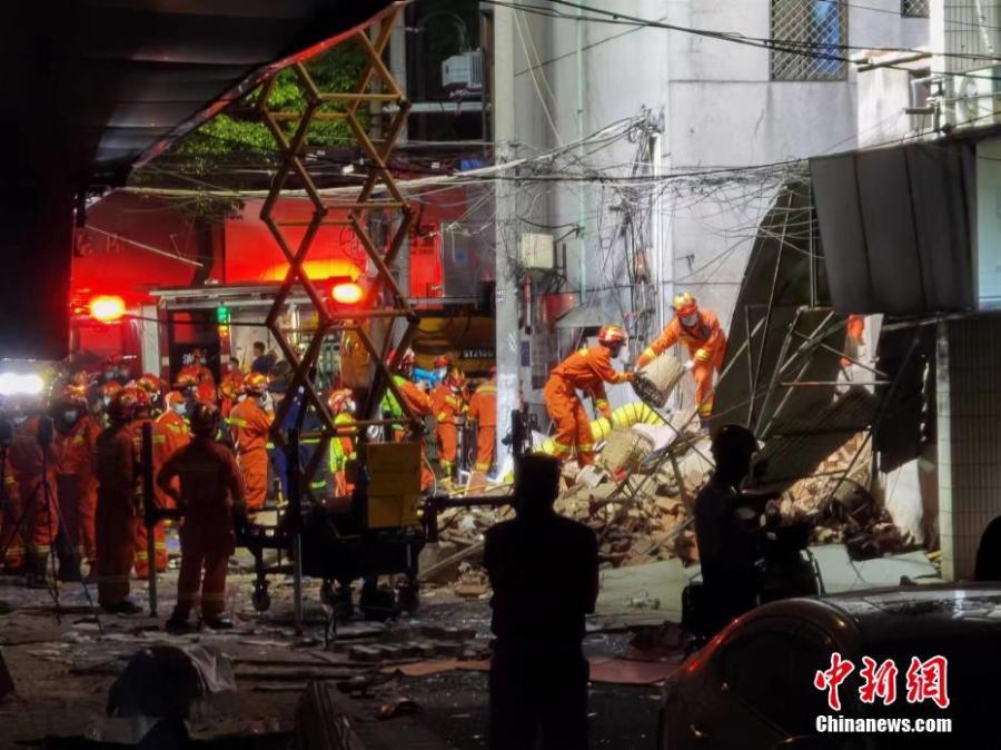 Firefighters conduct rescue work at an explosion site in Changzhou, east China's Jiangsu Province, May 24, 2022. (Photo: China News Service/Tang Juan)