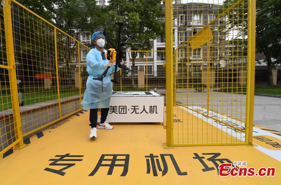 A staff member operates a drone to deliver nucleic acid samples in Hangzhou, east China's Zhejiang Province. (Photo: China News Service/Wang Gang)