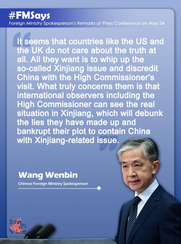 China on Tuesday refuted the so-called concerns of the United States and Britain over UN High Commissioner for Human Rights Michelle Bachelet's visit to China.