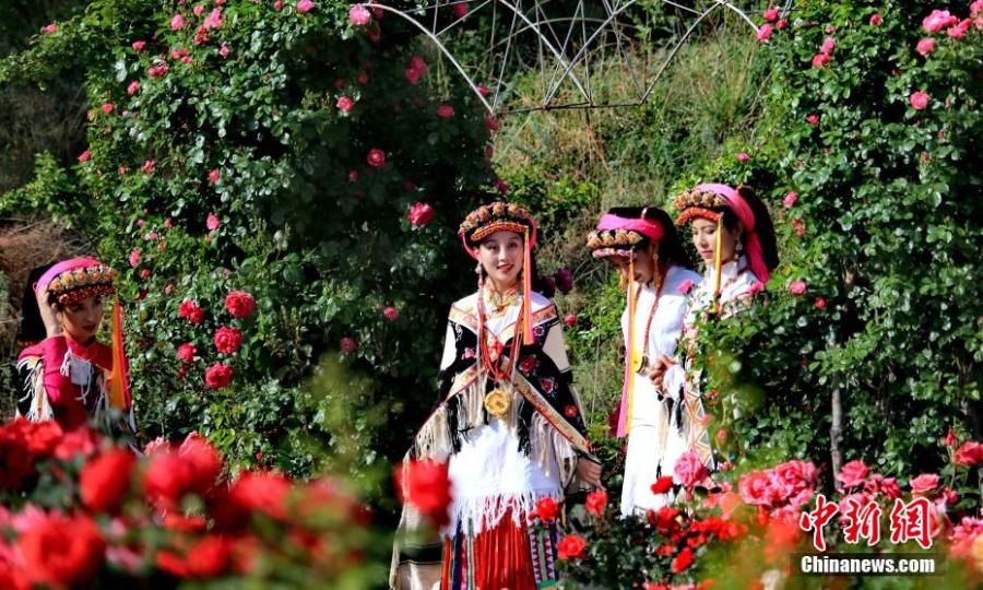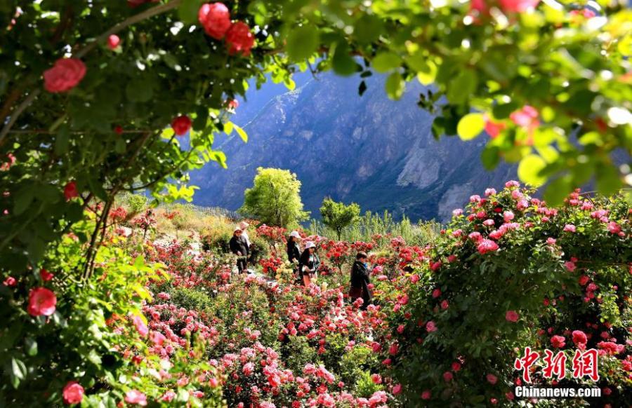More than 1.3 hectares of roses in full bloom form a sea of stunning colors, attracting many tourists in Jiaju Tibetan Village, Danba County of Ganzi Tibetan Autonomous Prefecture, southwest China's Sichuan Province in late May. (Photo: China News Service/Li Yongan)