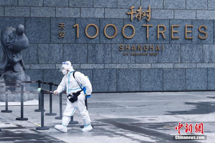 A staff member disinfects a public area at a shopping mall in Putuo district, Shanghai, May 26, 2022. (Photo: China News Service/Yin Liqin)
