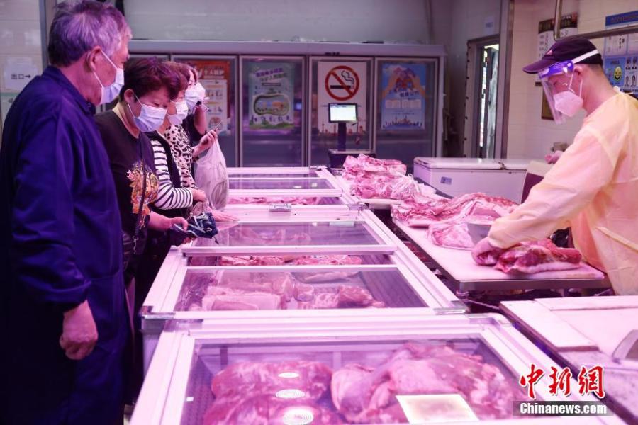 Residents select meat at a market in Putuo district, Shanghai, May 26, 2022. (Photo: China News Service/Yin Liqin)