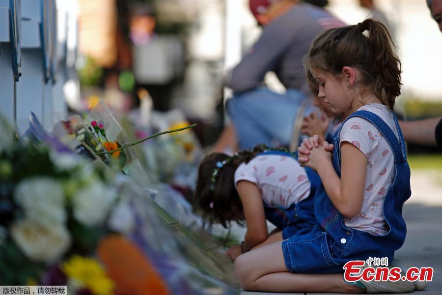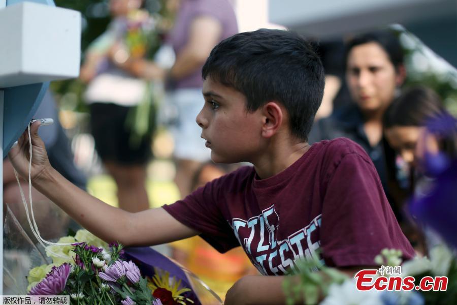 Children pray and pay their respects at a memorial site for the victims killed in an elementary school shooting in Uvalde, Texas, May 26, 2022. (Photo/Agencies)