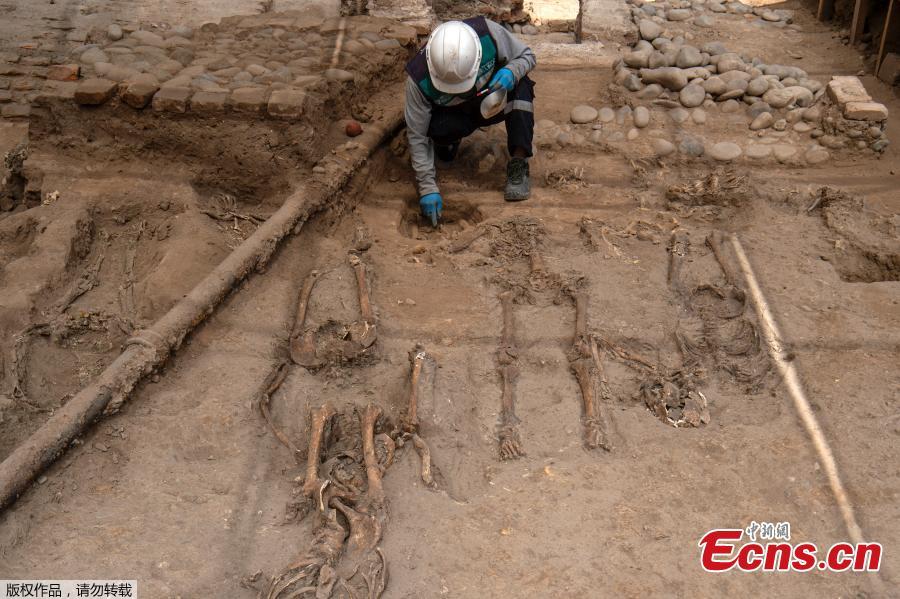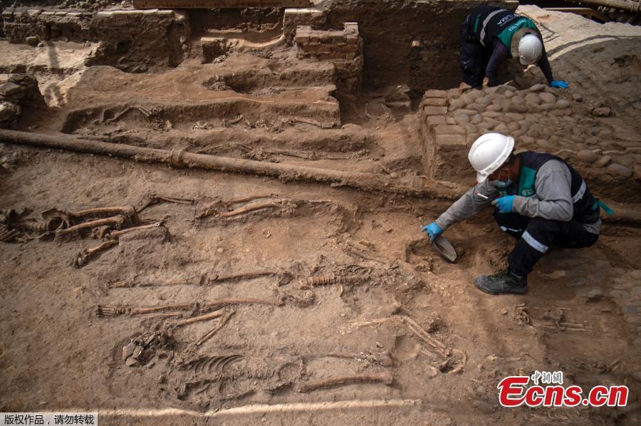 Men work at a crypt found at an old hospital in Lima, May 25, 2022. (Photo/Agencies)