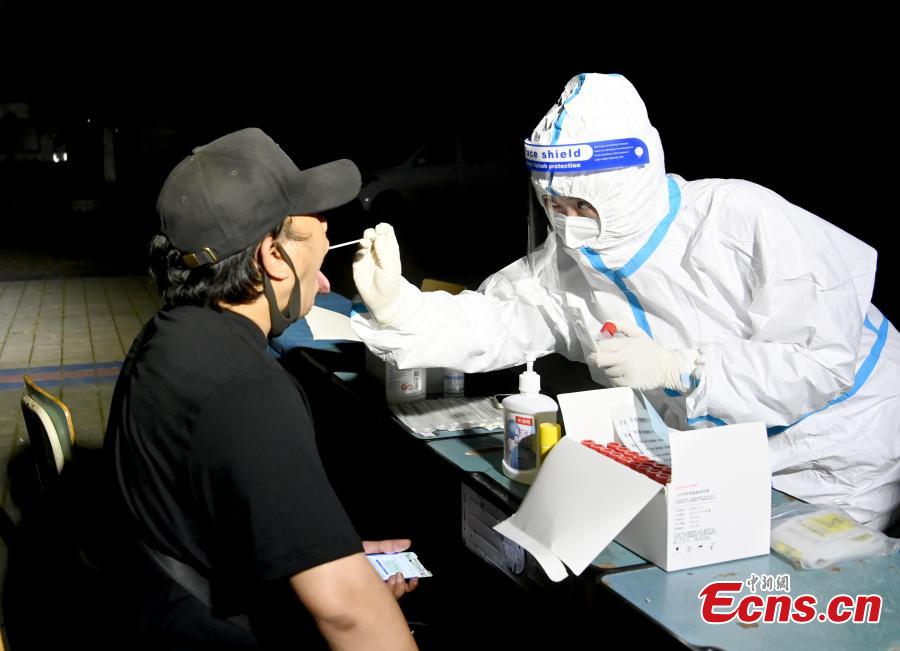 A resident takes nucleic acid test at a temporary shelter in Lushan County of Ya'an, southwest China's Sichuan Province, June 1, 2022. (Photo: China News Service/An Yuan)