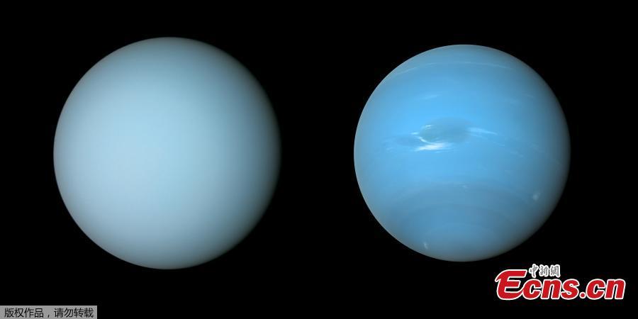 Photo released on May 31, 2022 shows views of Uranus (on the left) and Neptune (on the right) captured by NASA's Voyager 2 spacecraft during its flybys of the planets in the 1980s. (Photo/Agencies)