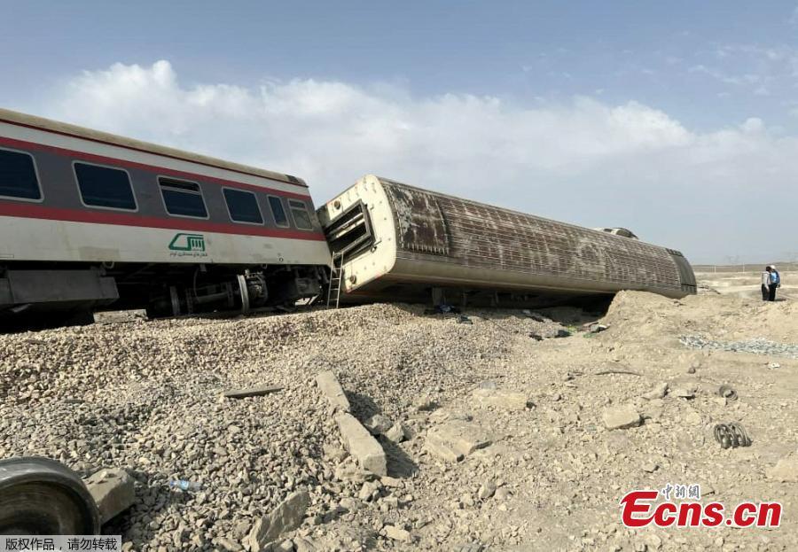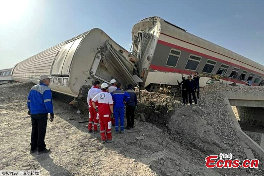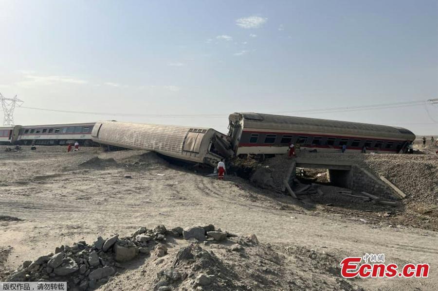 Rescuers work at the scene where a passenger train partially derailed near the desert city of Tabas in eastern Iran, June 8, 2022. (Photo/Agencies)