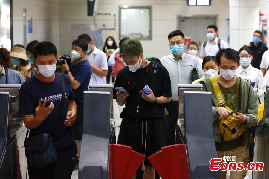Passengers scan their QR codes to get through a subway gate at a subway station in Beijing, June 9, 2022. (Photo: China News Service/Fu Tian)