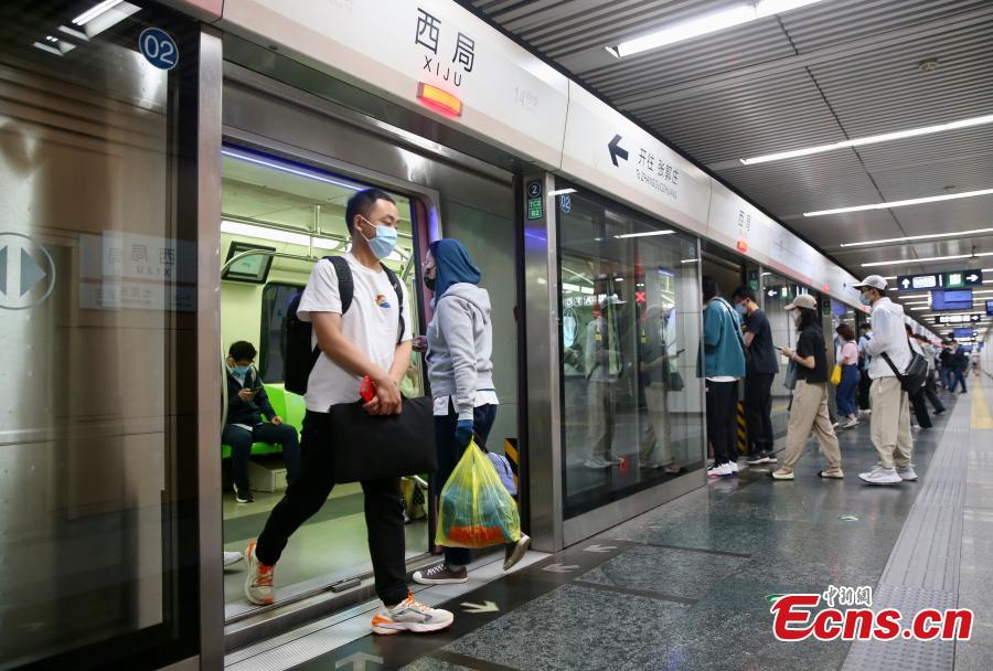 Passengers walk out of a subway station in Beijing, June 9, 2022. (Photo: China News Service/Fu Tian)