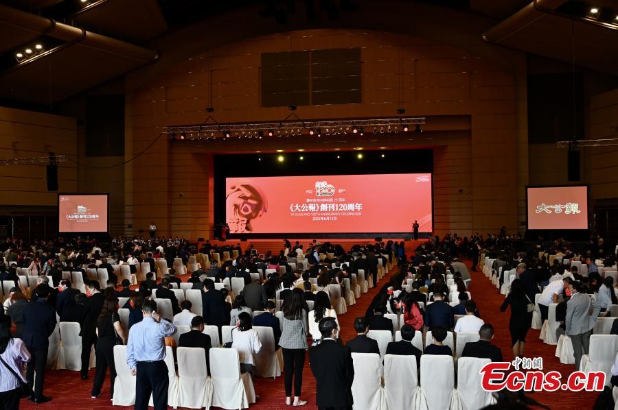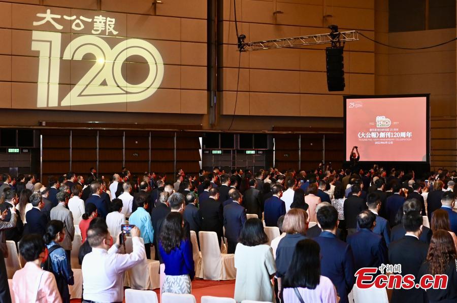 A ceremony marking the 120th anniversary of the founding of Ta Kung Pao is held in the Hong Kong Special Administrative Region, June 12, 2022. (Photo: China News Service/Li Zhihua)