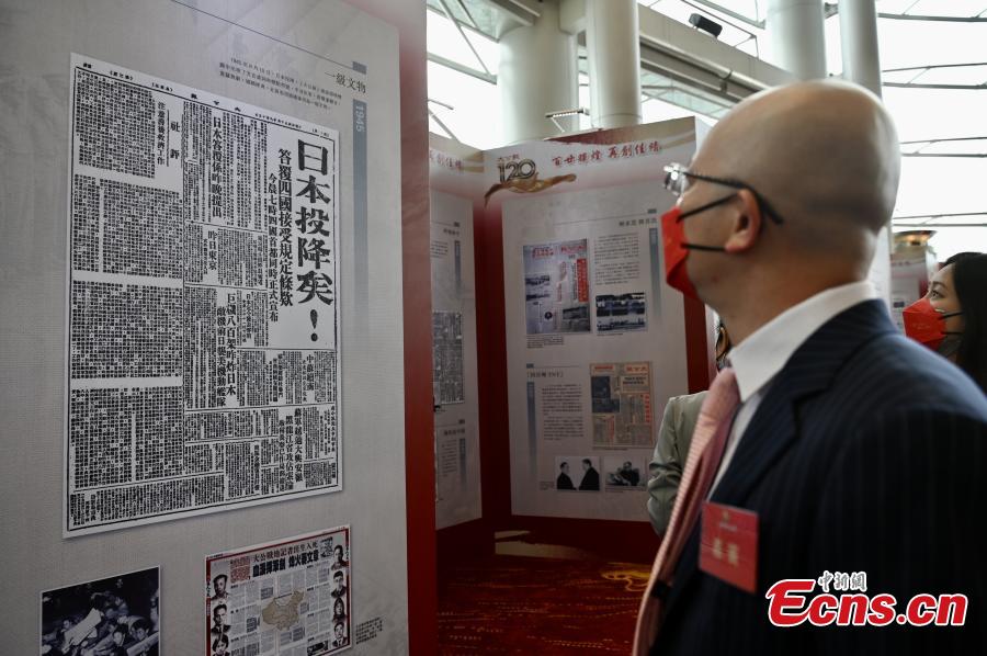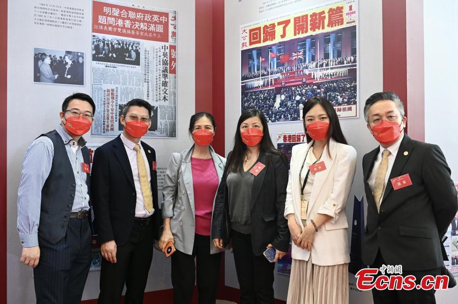 Visitors view a photo exhibition marking the 120th anniversary of the founding of Ta Kung Pao, which is held in the Hong Kong Special Administrative Region, June 12, 2022. (Photo: China News Service/Li Zhihua)