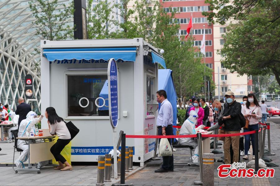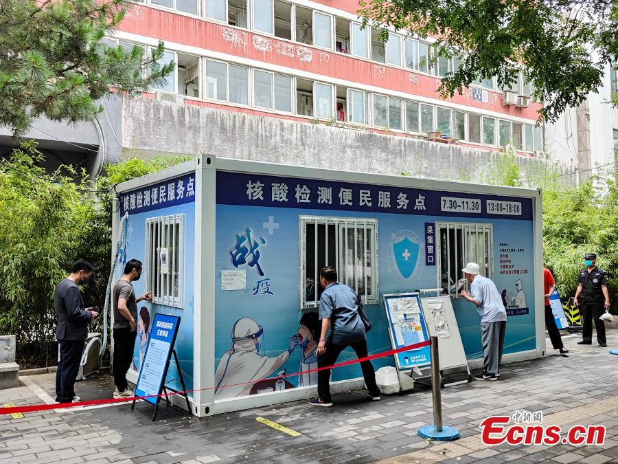 People take nucleic acid testing in Chaoyang district, Beijing, June 13, 2022. Chaoyang will carry out three rounds of nucleic acid testing for three consecutive days starting from Monday to eliminate the potential risk of further virus spread. (Photo: China News Service/Tian Tianyong)