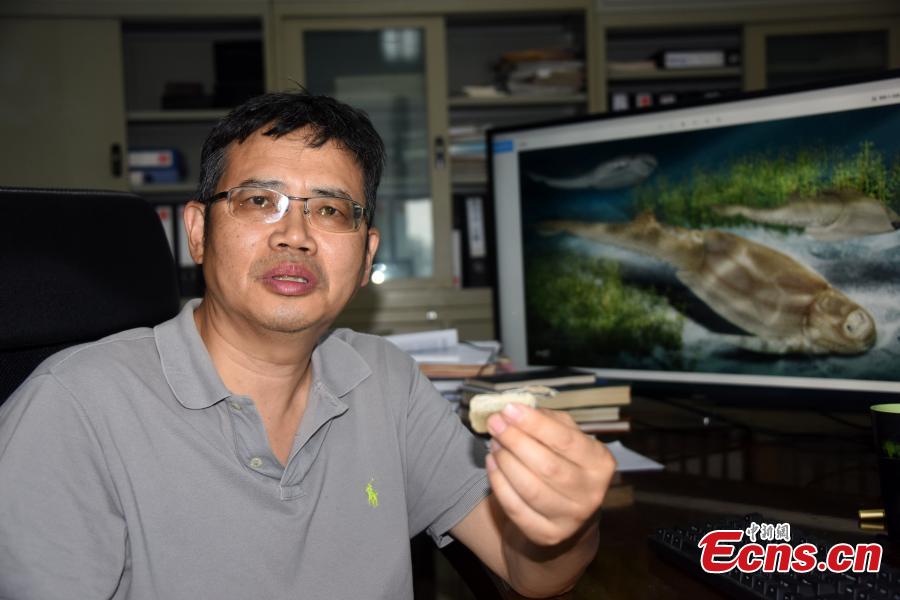 Photo shows the fossil of Parayunnanolepis xitunensis, Beijing, June 13, 2022.(Photo: China News Service/Sun Zifa)