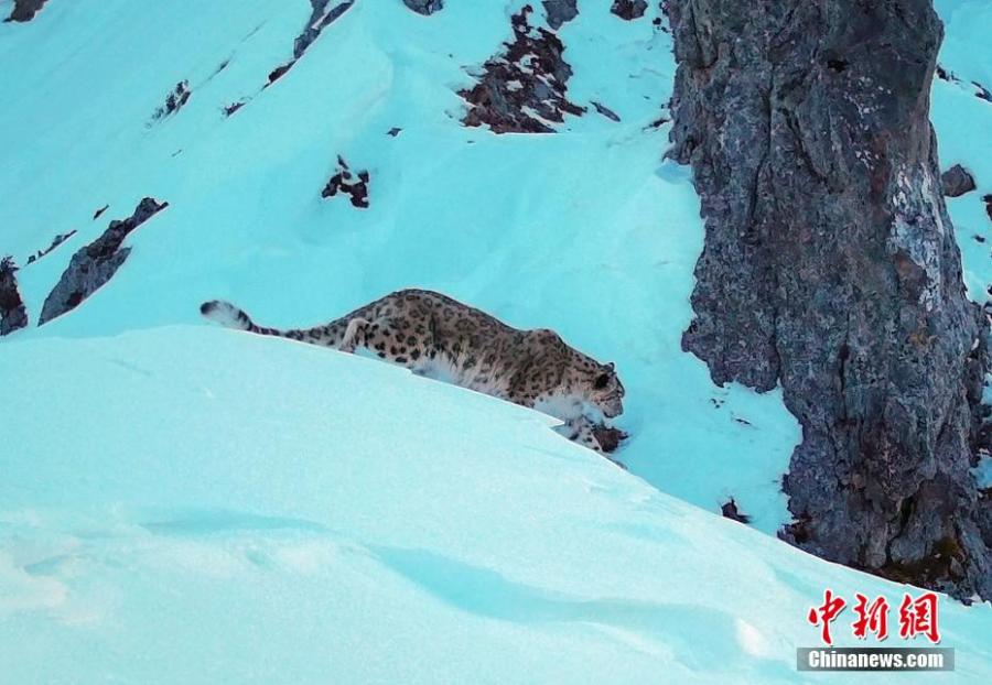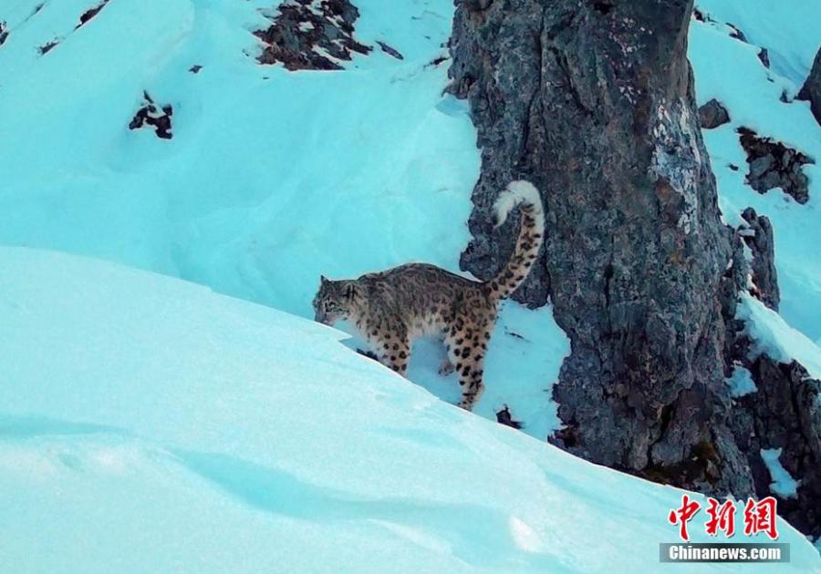 This image captured by an infrared camera in November 2021 shows a snow leopard at the Wanglang area of the Giant Panda National Park in Mianyang, southwest China's Sichuan Province. (Photo provided to China News Service)