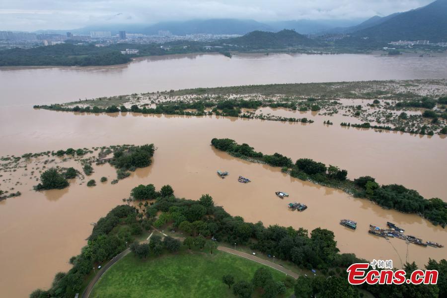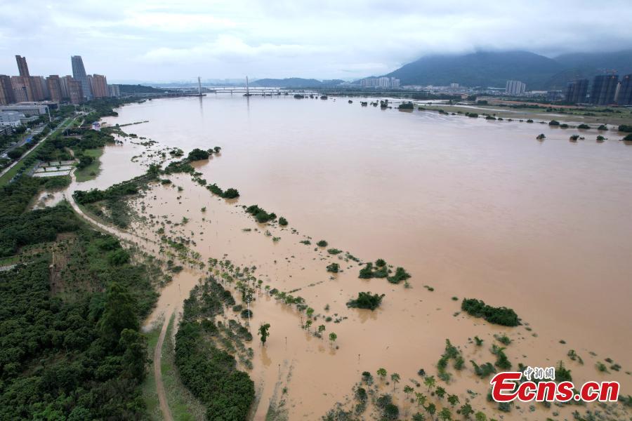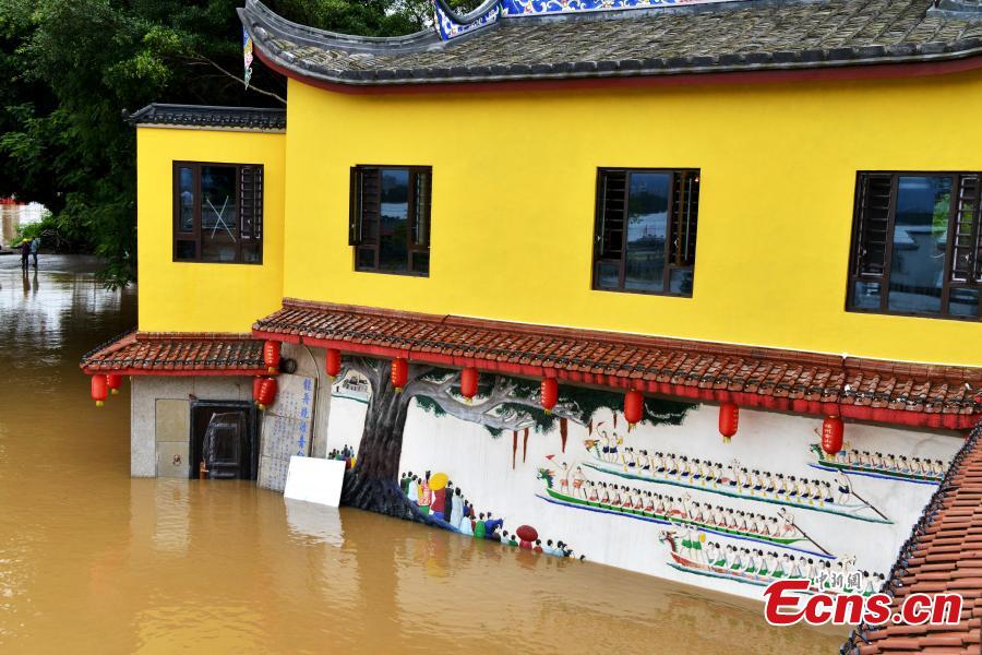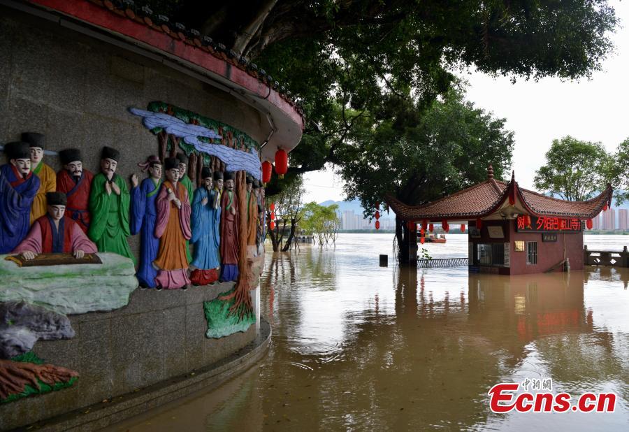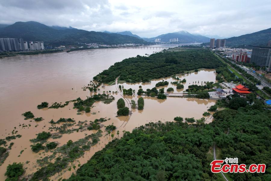 Persistent rainfall in the upstream area pushed up water levels of the Wulongjiang river in Fujian.