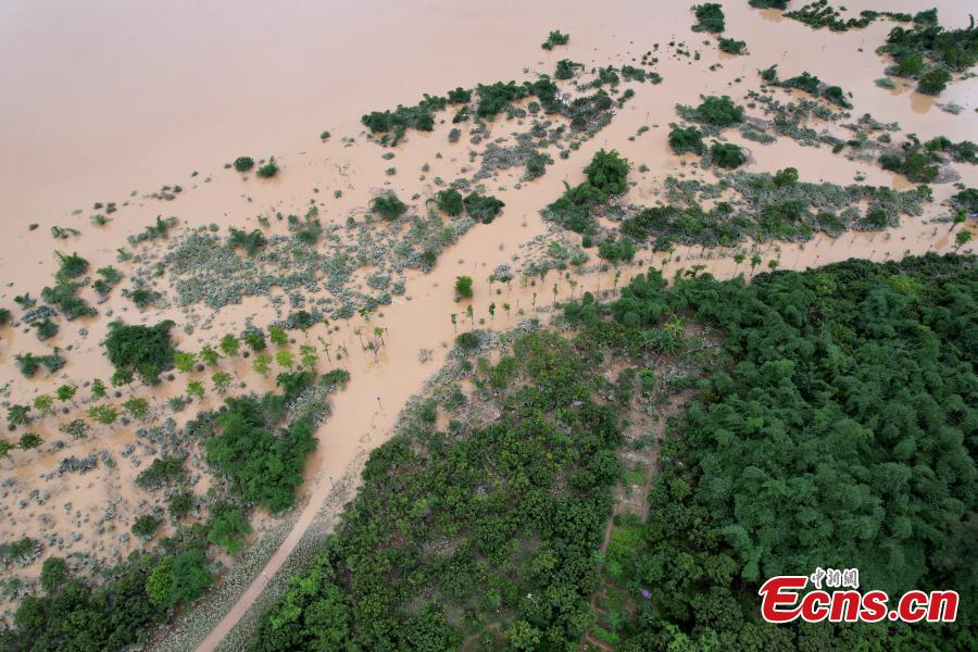 Aerial view of Jiangbin wetland park submerged in floodwater after torrential rain in Fuzhou, Fujian Province, June 15, 2022. (Photo: China News Service/Wang Dongming)