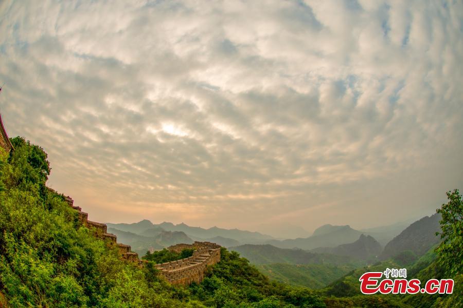 Spectacular fishscale clouds appear in the sky in Jinshanling section of the Great Wall in Luanping County, Chengde City, north China's Hebei Province, June 17, 2022. (Photo provided to China News Service)