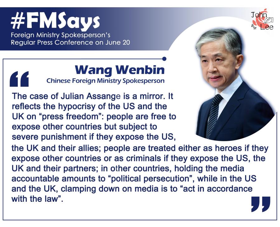 Assange's case shows hypocritical U.S., British 'press freedom': spokesperson