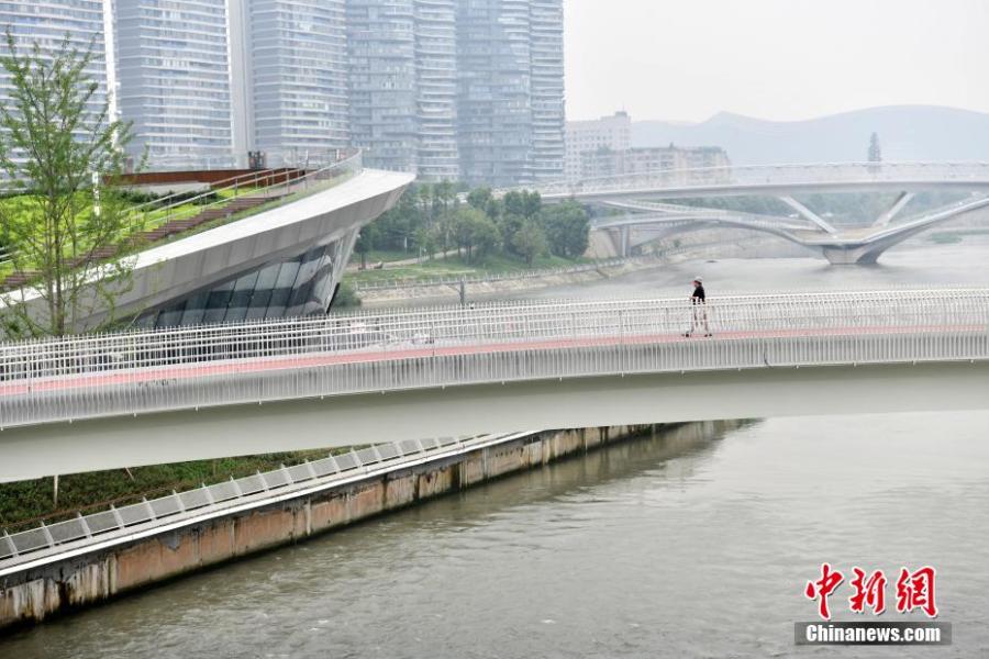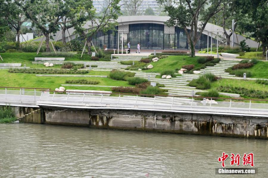 Residents visit the newly-built Furong Island Park on the waters of the Jinjiang River in Chengdu, southwest China's Sichuan Province, June 21, 2022. (Photo: China News Service/Zhang Lang)