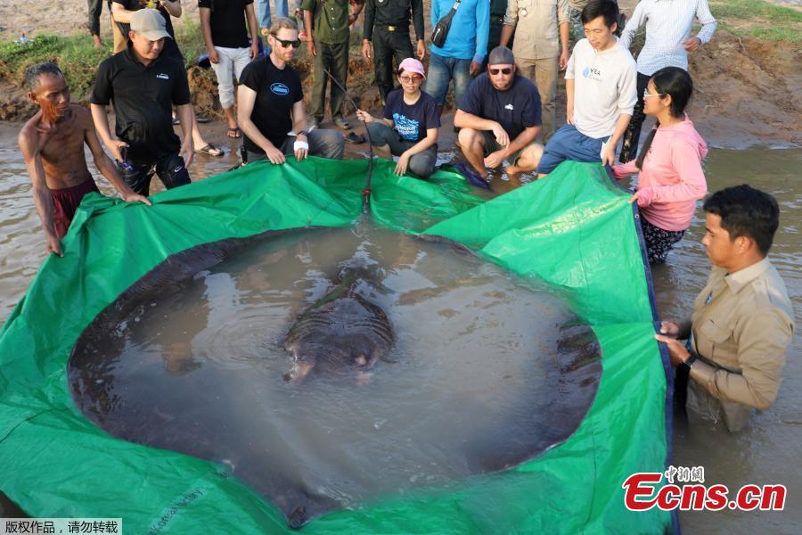 Photo shows a giant freshwater stingray in Stung Treng province, Cambodia. (Photo/Agencies)