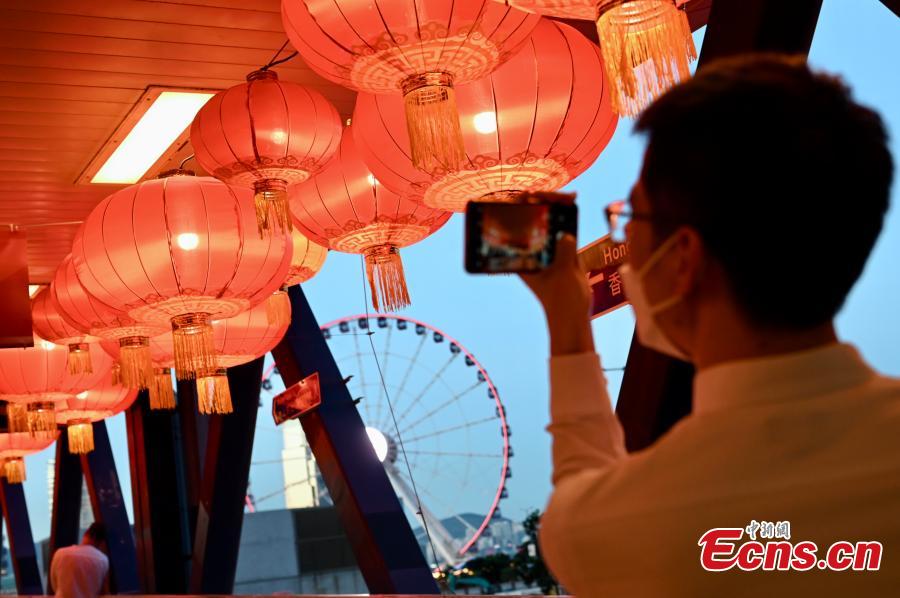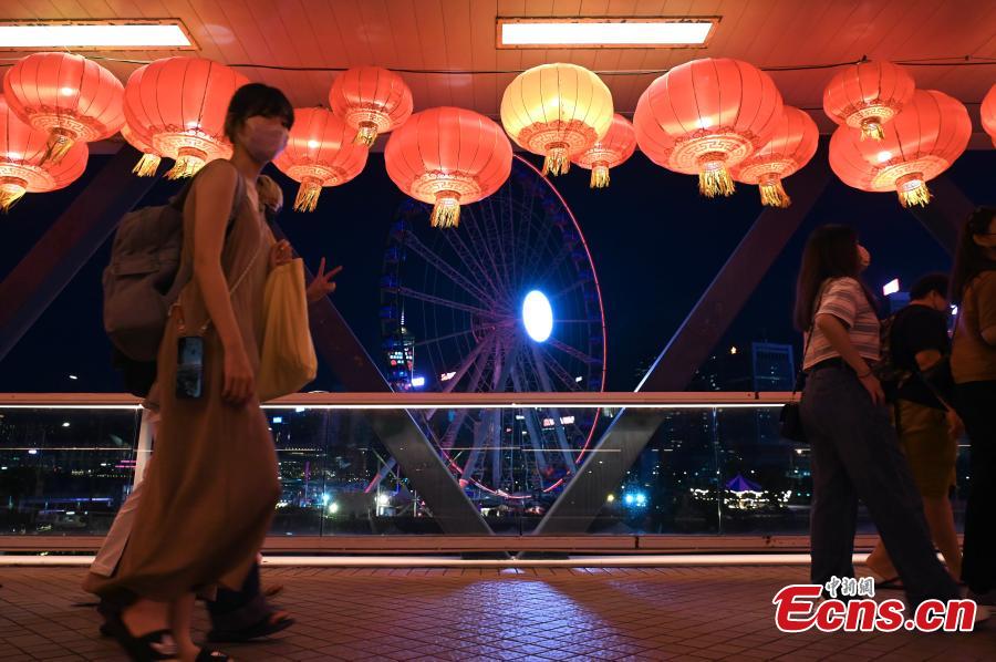 Lanterns are hung above an overbridge in the Hong Kong Special Administrative Region, June 23, 2022. This year marks the 25th anniversary of Hong Kong's return to the motherland. (Photo: China News Service/Li Zhihua)