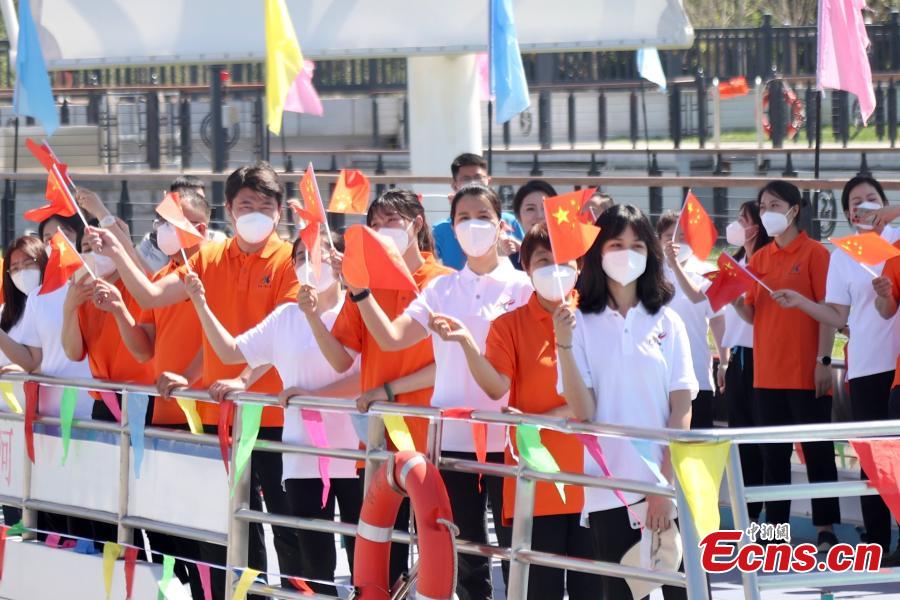 People attend the opening ceremony of the Beijing-Hebei section of the Grand Canal, also known as the Beijing-Hangzhou Grand Canal, a UNESCO World Heritage Site, on a cruise ferry in Beijing, June 24, 2022. (Photo: China News Service/AnQingsong)