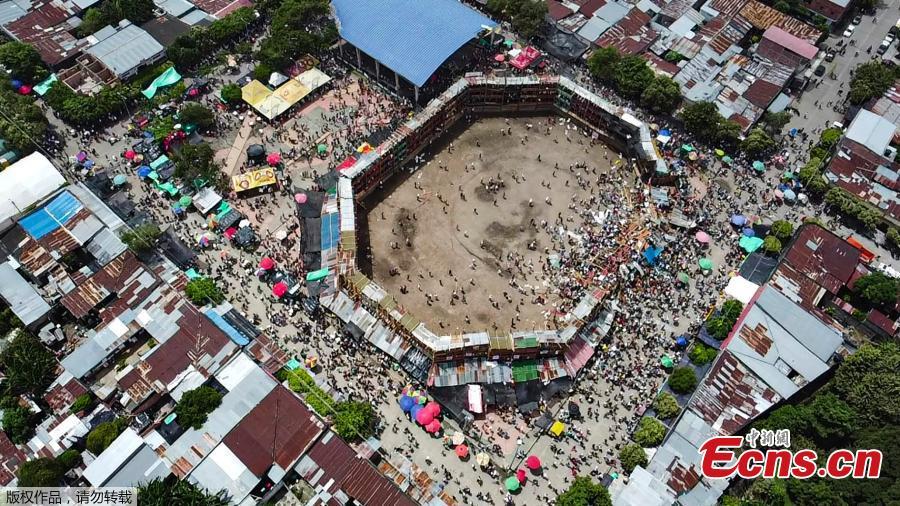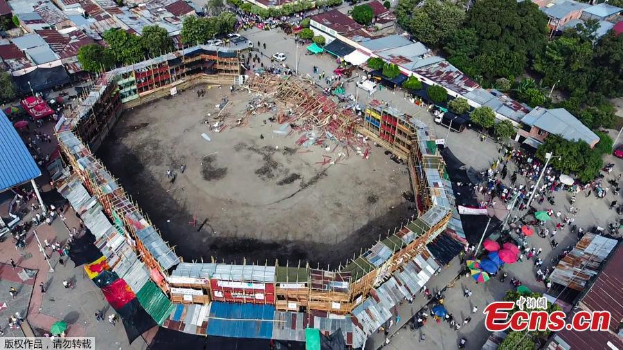 Aerial view of the collapsed grandstand in a bullring in the Colombian municipality of El Espinal, southwest of Bogota, Colombia, June 26, 2022. (Photo/Agencies)
