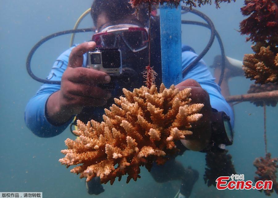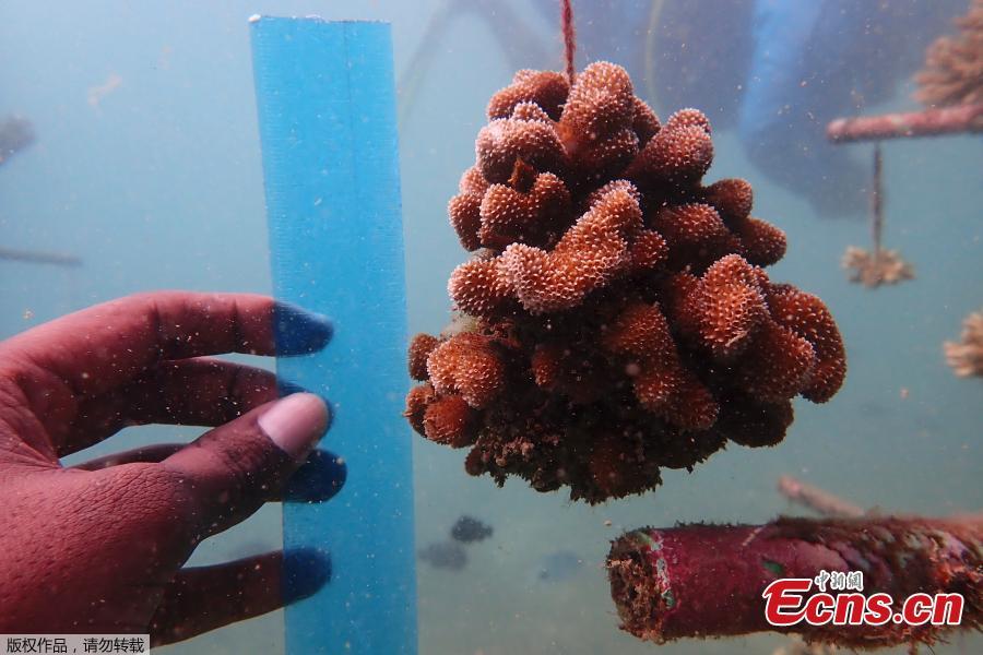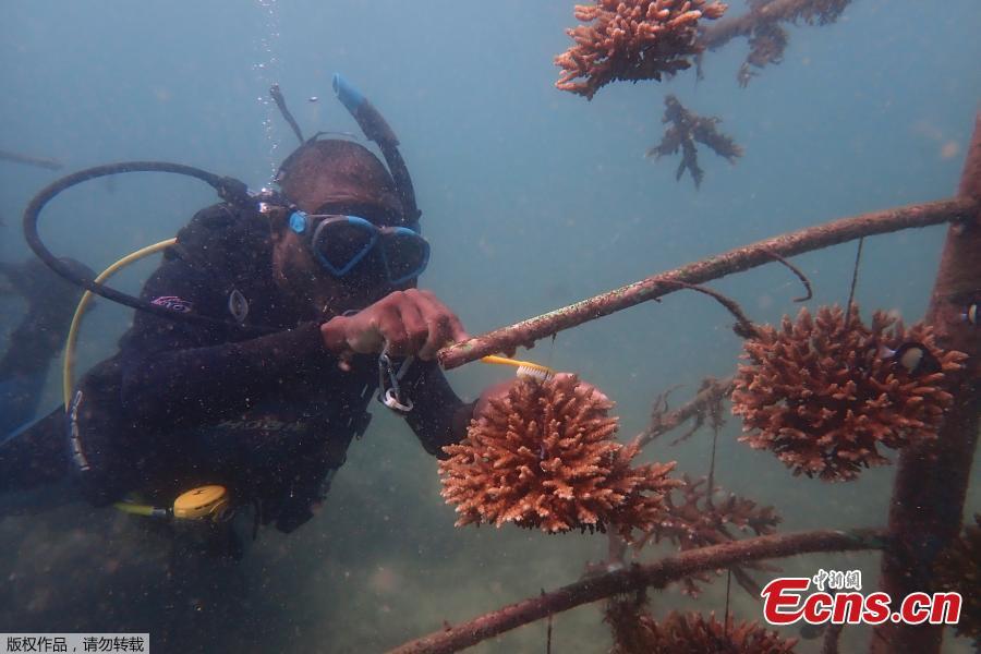 The marine area off the coast of Kenya at Wasini Island, jointly managed by a foundation and the island's community, has been planting over 8,000 corals a year since 2010 and placed about 800 artificial reef structures in the channel in a bid to restore Wasini’s coral gardens. (Photo/Agencies)